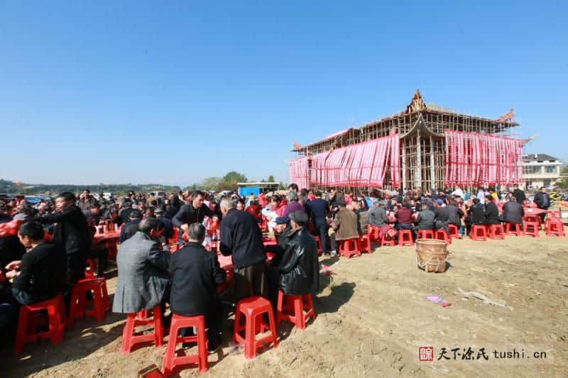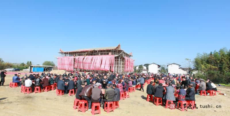 参加封顶仪式活动的宗亲除本地在家宗亲外,还有特意从外地赶回来的宗亲、有外迁宗亲代表,总的参与宗亲达到600余人,一片亲如一家的欢悦气氛。